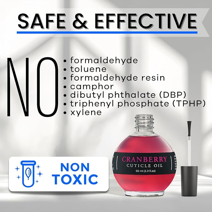 Moisturizing Cuticle & Nail Care Oil 2.3 Fl Oz - Cranberry Scented – Infused with Jojoba Oil, Aloe, Vitamin E – Nail & Cuticle Hydration, Repair, Moisturizer, Strengthener, Growth
