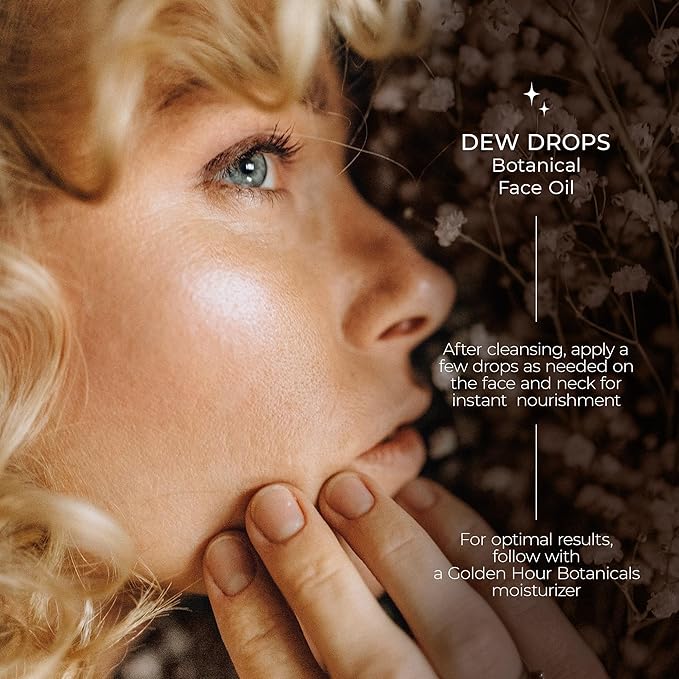 - DEW DROPS BOTANICAL FACE OIL: This fast absorbing, restorative face oil contains a blend of 17 plant-powered oils for an instant infusion of moisture and radiance for healthy looking, glowing skin. Infused with botanical oils, Dew Drops will leave your skin feeling nourished and fresh with an intoxicating natural slightly scented fragrance