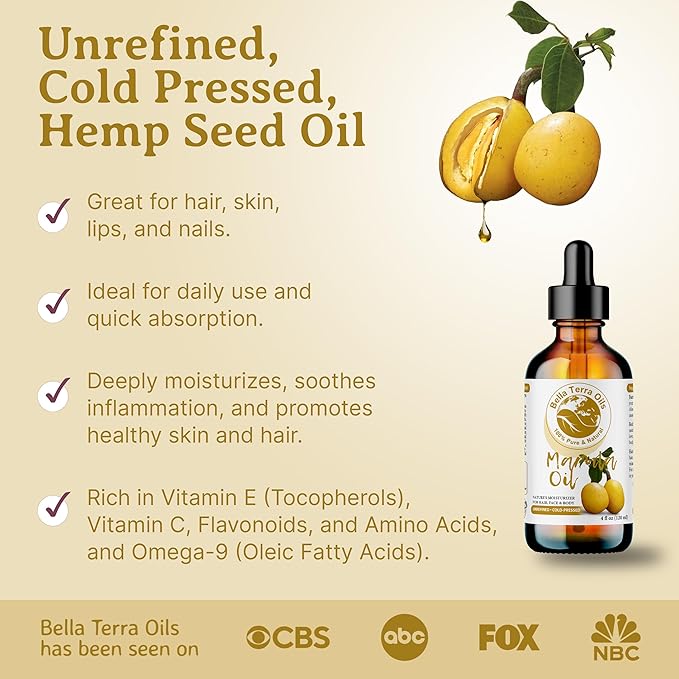 Bella Terra Oils - Marula Face Oil 4oz - The Touch of Nature's Purest, Packed with Vitamin B & Vitamin A, A Glow-Boosting Sensation