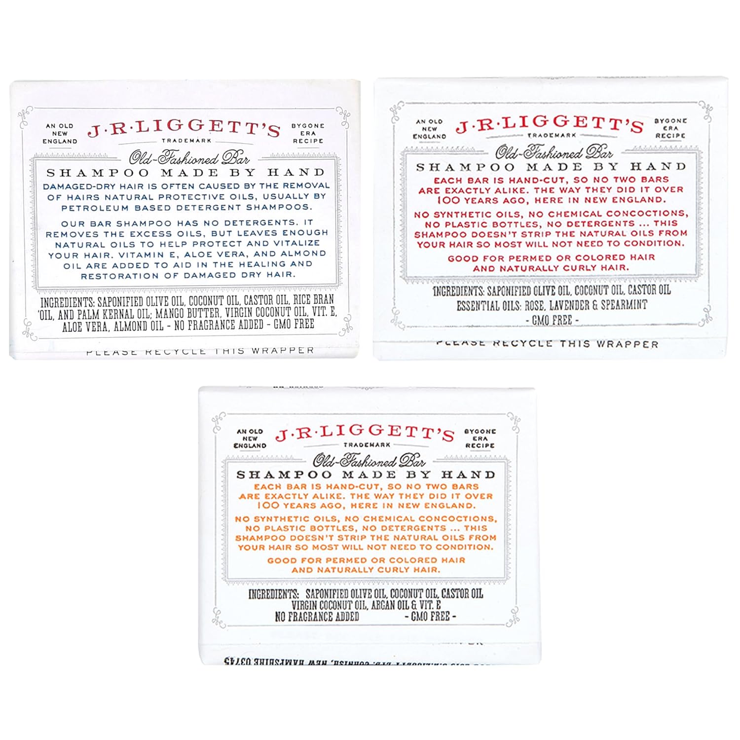 J.R.LIGGETT’S Original Formula, Moisturizing Formula and Coconut & Argan Oil Shampoo Bars - Plant-Based Nourishing Shampoo Bars for All Hair Types - Sulfate-Free for Healthy Hair - 3-Pack