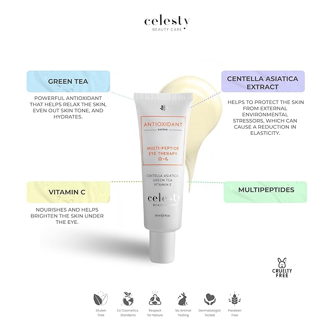 - Multi-Action Multi Peptide Under Eye Cream: Works as eye cream + dark circle, wrinkle, under eye bag corrector. Apply AM/PM for best results. Pairs perfectly with Celesty Beauty sunscreen for daytime protection.