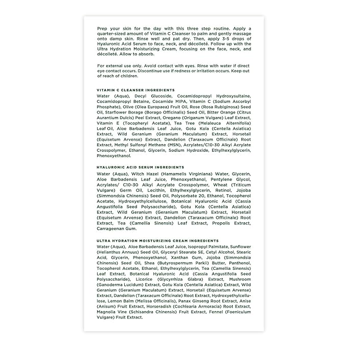 - Directions: Apply Vitamin C Serum in the morning followed by Retinol Serum in the evening. Apply 3-5 drops to clean, dry skin on face, neck, and décolleté. Follow with Luxe Ageless Matrixyl 3000 Cream both day and night. Apply to clean, dry skin. Massage into face, neck, and décolleté. Allow to absorb. Use sunscreen daily, as retinol increases sun sensitivity.