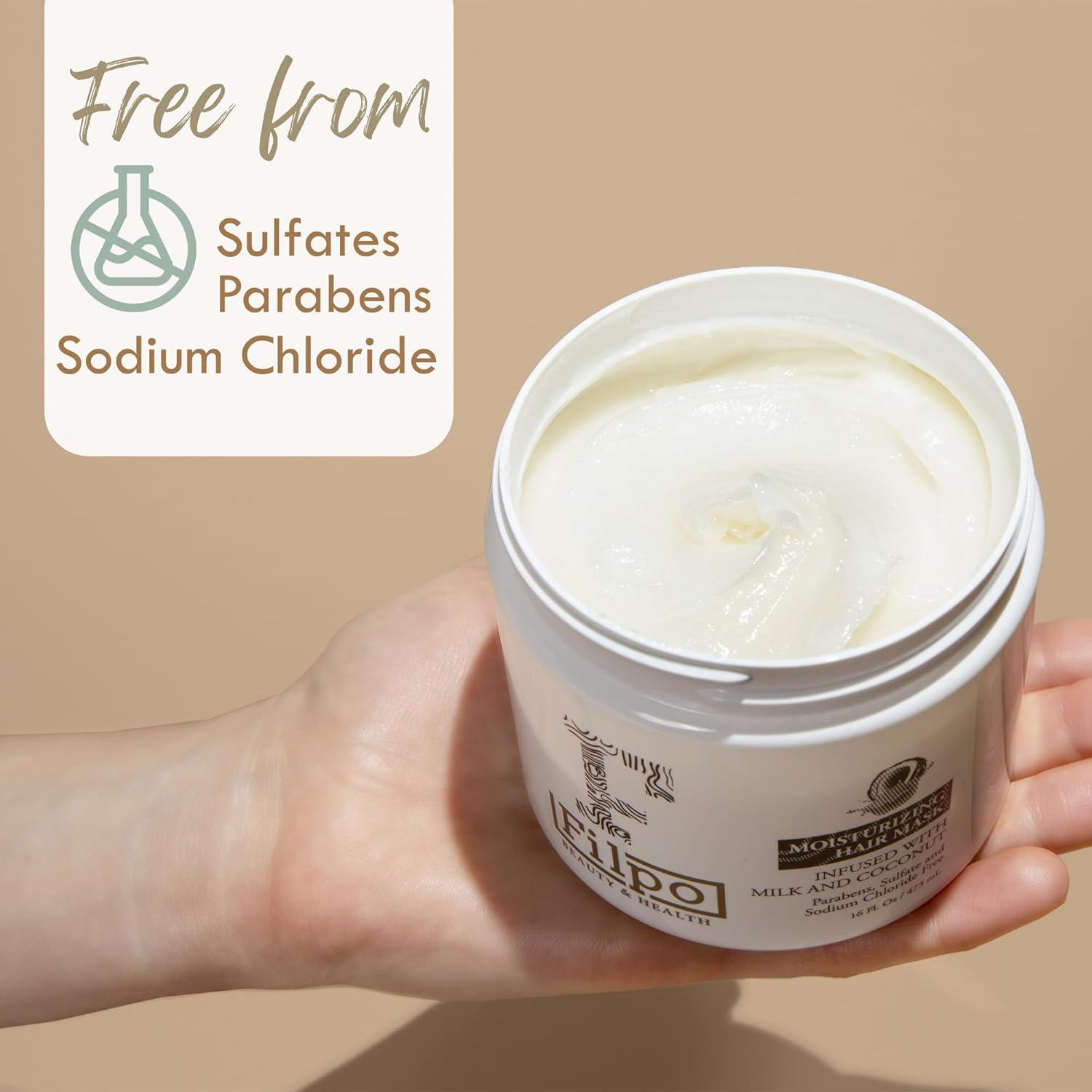 FILPO Coconut Milk Hair Mask - Deep Conditioning with Coconut Oil and Argan Oil for Dry, Damaged, Curly Hair Growth & Sulfate Free Hair Care