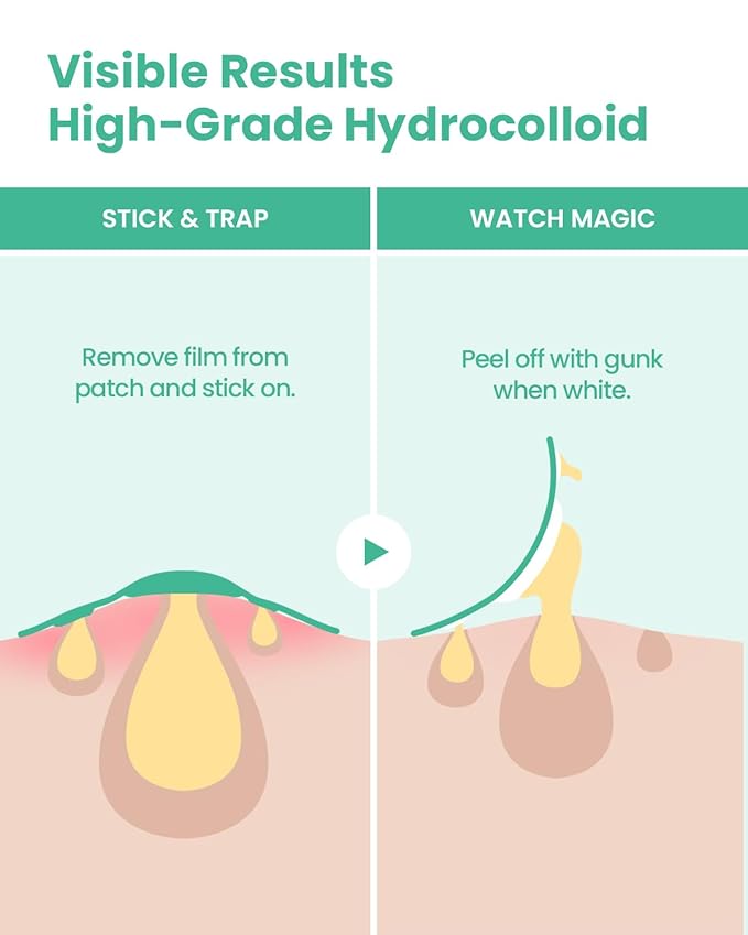- ⏱️ VISIBLE RESULTS - Effectively absorbs excess sebum and impurities from pores. Hydrocolloid patch turns white when oil and buildup are fully absorbed in just 6-8 hours.