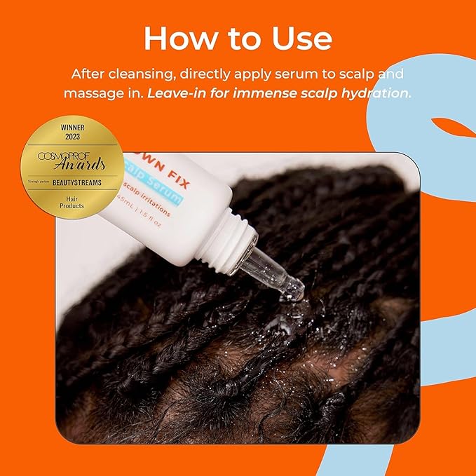 - Hydrate & Soothe Irritation - Our Crown Fix dry scalp serum can help relieve damage from heat styling, chemical bleaching, braids, cornrows and permanent color treatments. Its soothing formula can also offer itchy scalp relief, and help hydrate visibly dry, irritated skin.