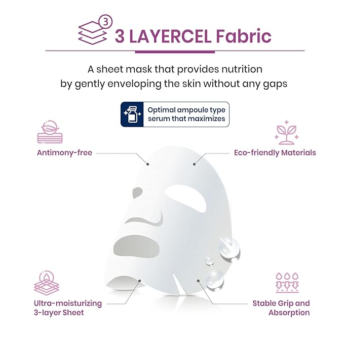 - 3 LAYERCEL FABRIC – The mask fabric is stiff by design. This helps the nutrients in the sheet mask to be absorbed more efficiently by your face skin