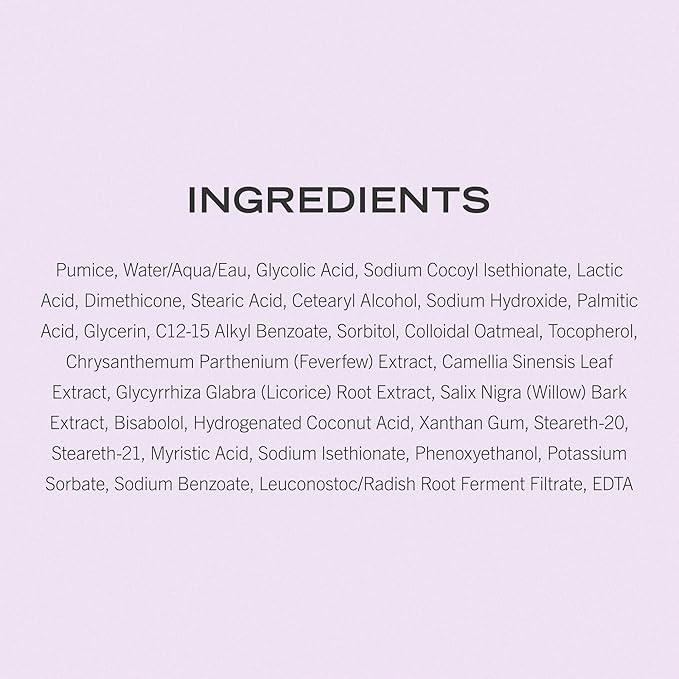 - Buff Away Dead Skin: Glycolic and Lactic Acids at a combined level of 10% help loosen skin’s top layer and decongest pores, while Pumice Buffing Beads (NOT microplastic!) whisk it all away