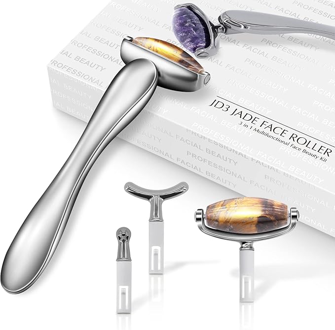 I·B·N G Jade Face Roller, Facial Tools Face Rollers for Women, Face Massage Skin Care Beauty Tools with 3 Interchangeable Heads (Cat Eye+Black)