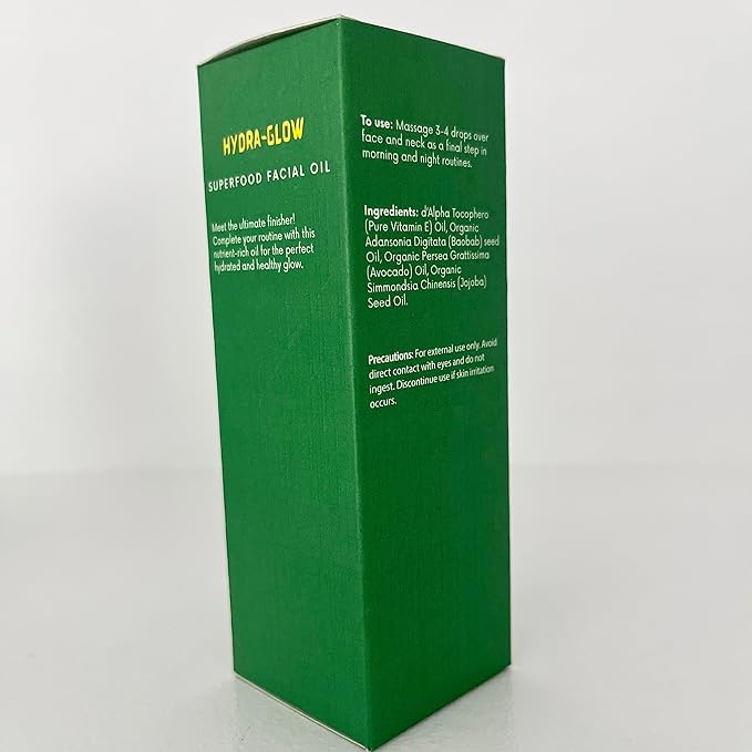 Hydra-Glow Superfood Facial Oil | Skin-Smoothening, Nutrient- Rich, Fragrance-free, Lightweight | Vitamin E, Baobab, Avocado and Jojoba Oils | Day and Night oil | 1 oz