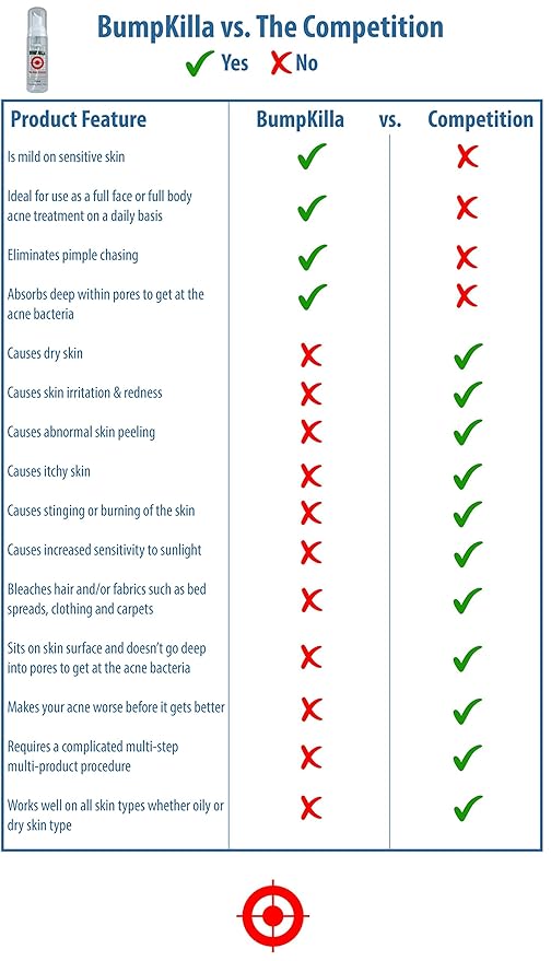 - No Dry Skin - Adult acne treatment and a premier acne treatment for teens with sensitive skin. Ideal for all your sensitive body parts, especially your face. BumpKilla will not dry out or irritate your skin. BumpKilla is alcohol free, fragrance free, pigment free, oil free, clog free, hassle free and will leave you acne free. With 100% water soluble ingredients and absolutely no colorants, BumpKilla cannot and will not stain any fabric - despite claims to the contrary. NOT FOR SHAVE BUMPS.