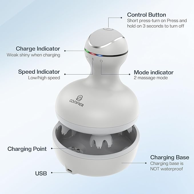 - [Full-body Relaxation Massage] COMFIER head massager is not only suitable for the scalp, but also for the neck, shoulders, hands, legs, and any parts that are prone to fatigue and soreness. Its strength is moderate, meeting everyone's massage needs.