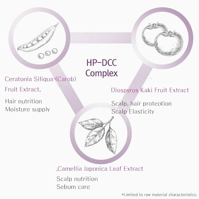 - This product contains HP-DCC Complex (patented ingredient for scalp and hair), hidden extract, camellia leaf extract, and carob fruit extract to protect the scalp and hair and provide rich nutrition.