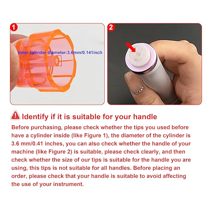 - 【USAGE AND NOTICE】Please pay attention to whether the product matches the size and shape of the handle before purchasing. If not, you can go to our other link selection. Remove from the packaging, ensuring that it is correctly fitted and locked in the internal slot. Then screw tightly onto the appropriate handle required. Switch on the machine.When finished, unscrew the accessories and dispose of tips properly. Clean the handle and the machine after use.