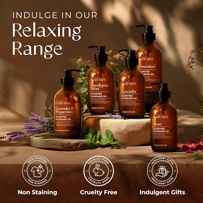 - 100% natural. Gya Labs' Lavender and Peppermint Massage Oil is made with premium ingredients sourced from Mother Nature. Our products do not contain hexanes, additives, sulfates and artificial fragrances. No nasties, just plant-powered self-care.
