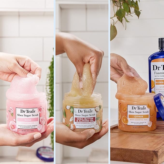 - GENTLE EXFOLIATION: Dr Teal's Shea Sugar Body Scrub gently exfoliates skin with pure sugar ingredients.