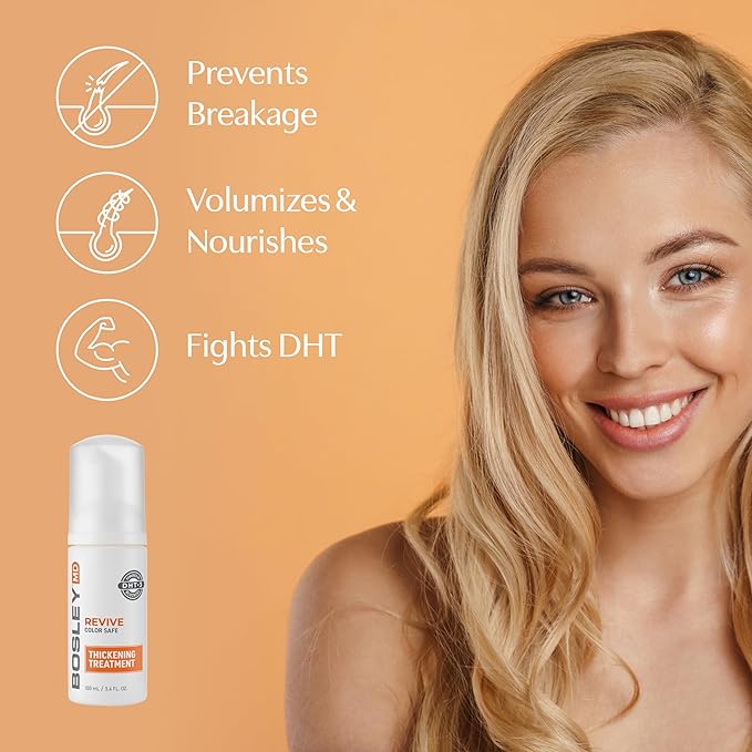 BosleyMD Revive Color Safe Thickening Treatment, Liquid Foaming Treatment Clinically Proven to Restore Visibly Thinning Hair 3.4 Fl Oz