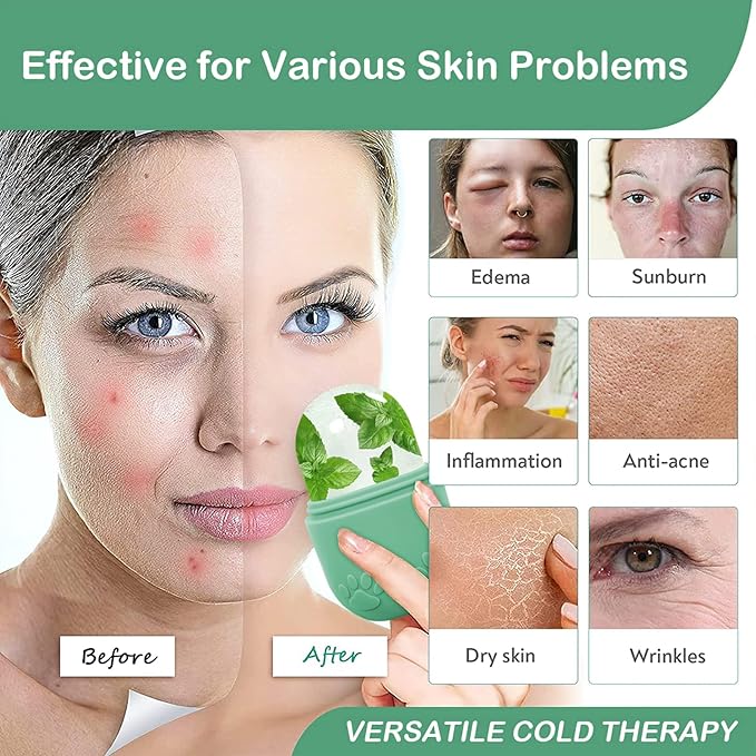 Face Ice Roller, Ice Cube Roller for Eye Puffiness Relief, Silicone Icer Tool for Face and Neck to Relieve Fine Lines Puffiness Pores Wrinkles (Green)