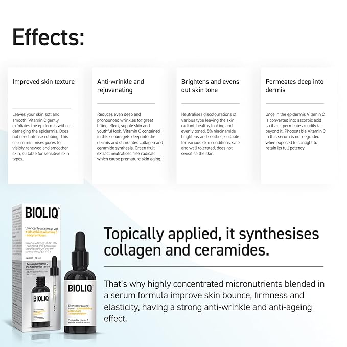 - Reduces even deep and pronounPowerful Facial Serum Fusion: Bioliq Pro Photostable face serum combines photostable vitamin C and niacinamide, offering versatile and broad-spectrum effects at an ideal pH for maximum bioactivity.ced wrinkles
