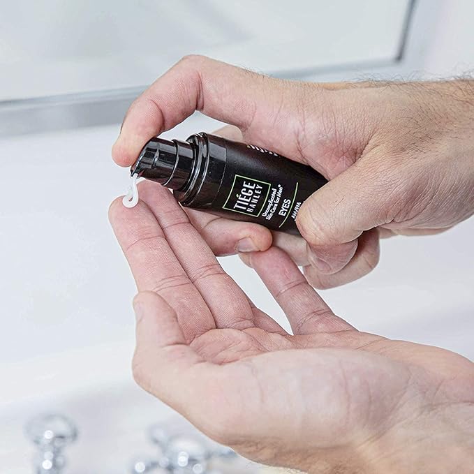 Tiege Hanley Morning and Night Facial Firming Serum (SUPER SERUM) and Eye Cream (EYES) for Men | Anti-Aging Pack | Sodium Hyaluronate and Retinyl Palmitate for Tighter, Smoother Skin | Caffeine to Fight Dark Circles | 0.5 ounces each