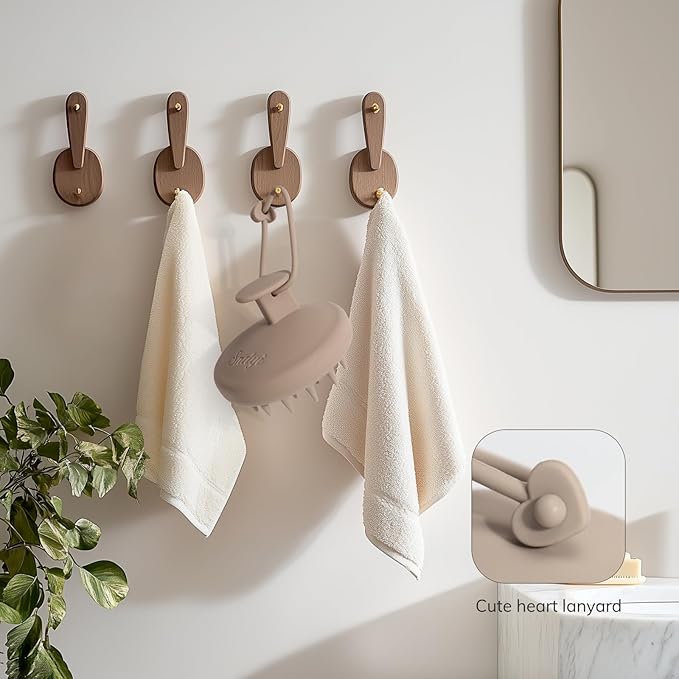 Sndyi Silicone Scalp Massager Shampoo Brush, Hair Scrubber with Soft Silicone Bristles, Scalp Scrubber/Exfoliator for Dandruff Removal, Wet Dry Scalp Brush for Hair Growth & Scalp Care, Khaki