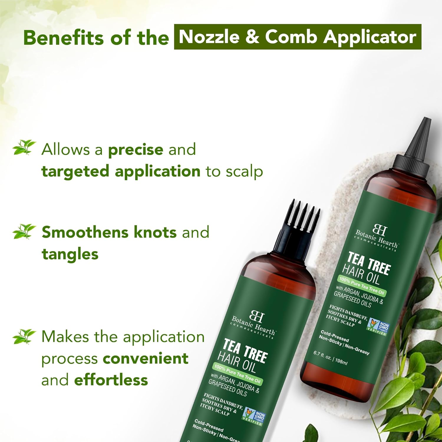 Botanic Hearth 100% Pure Tea Tree Oil For Hair (6.7 Fl Oz) | With Jojoba & Grapeseed Oils | Hair Oil Repairs Dry Damaged Hair, Strengthening, Healthier Hair- Hair Tonic