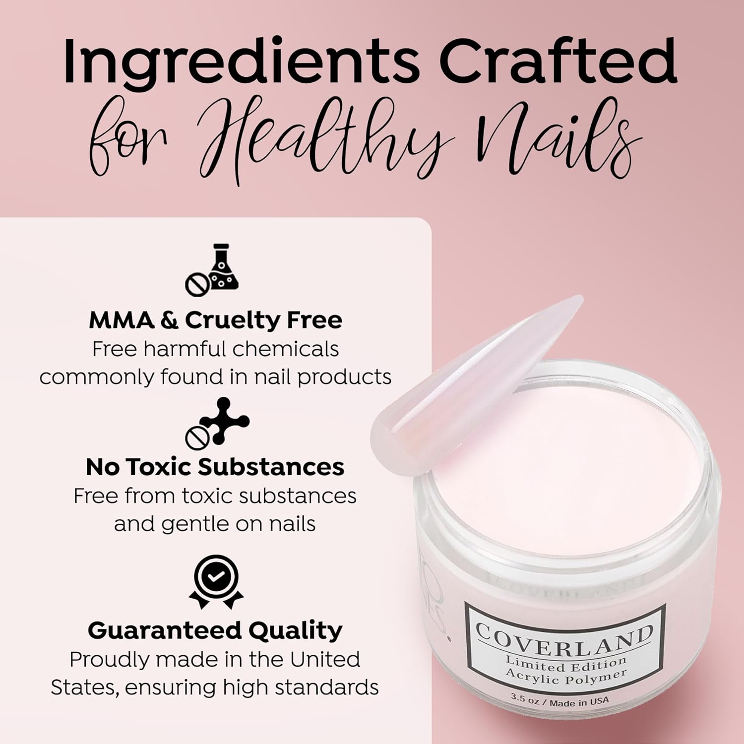 - βοΈππππ ππππππππ πππππ: The flexibility and adhesion properties of Coverland colored acrylic nail powder make it easy to shape nails with precision, and offers nice control for professionals who prefer to work with a polymerization rate of moderate to fast.