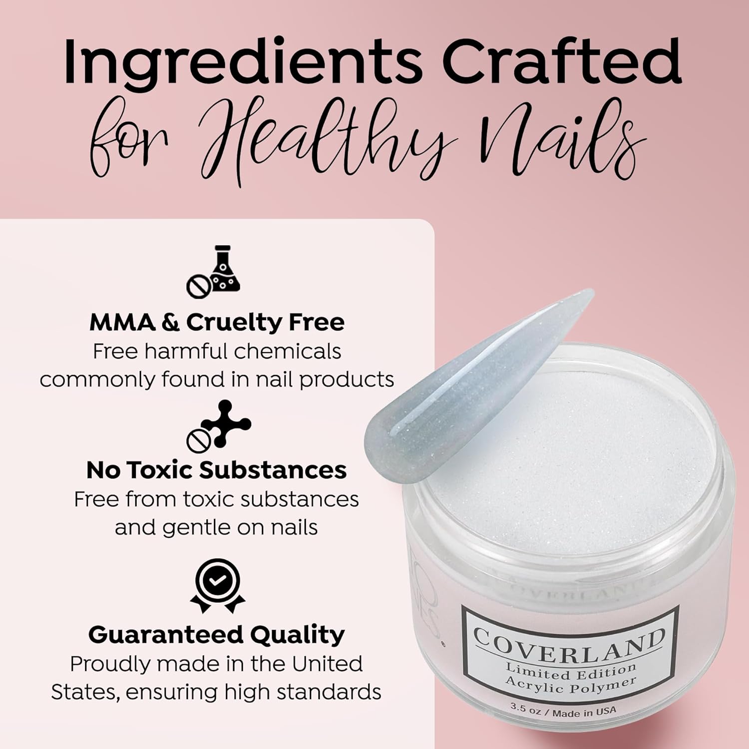 - βοΈππππ ππππππππ πππππ: The flexibility and adhesion properties of Coverland colored acrylic nail powder make it easy to shape nails with precision, and offers nice control for professionals who prefer to work with a polymerization rate of moderate to fast.