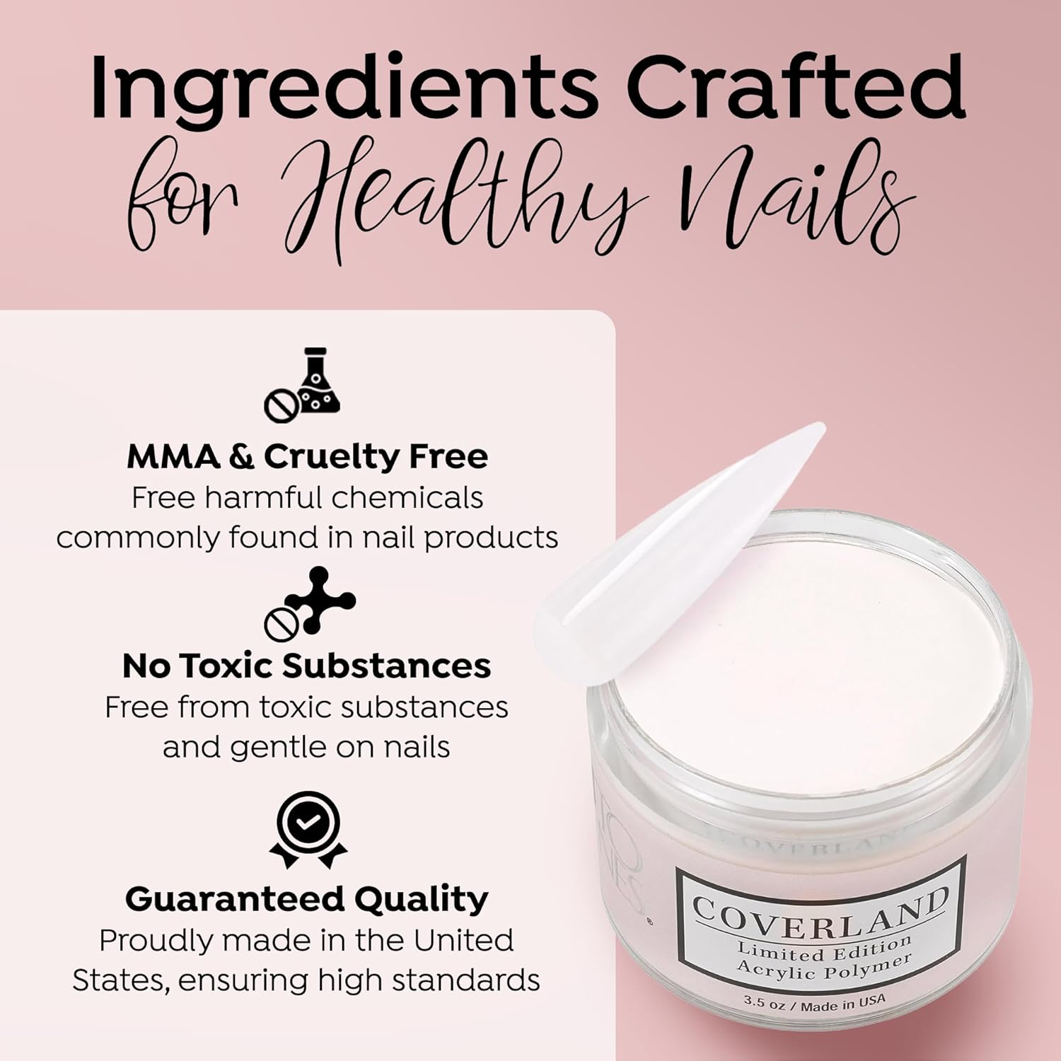 - CAMOUFLAGE IMPERFECTIONS: Coverland Polymers cover the nail bed with highly saturated skin tones and colors, helping to improve aesthetic appearance and hide imperfections. This specially formulated solution ensures a smooth, even application, allowing you to create flawless nail art with ease