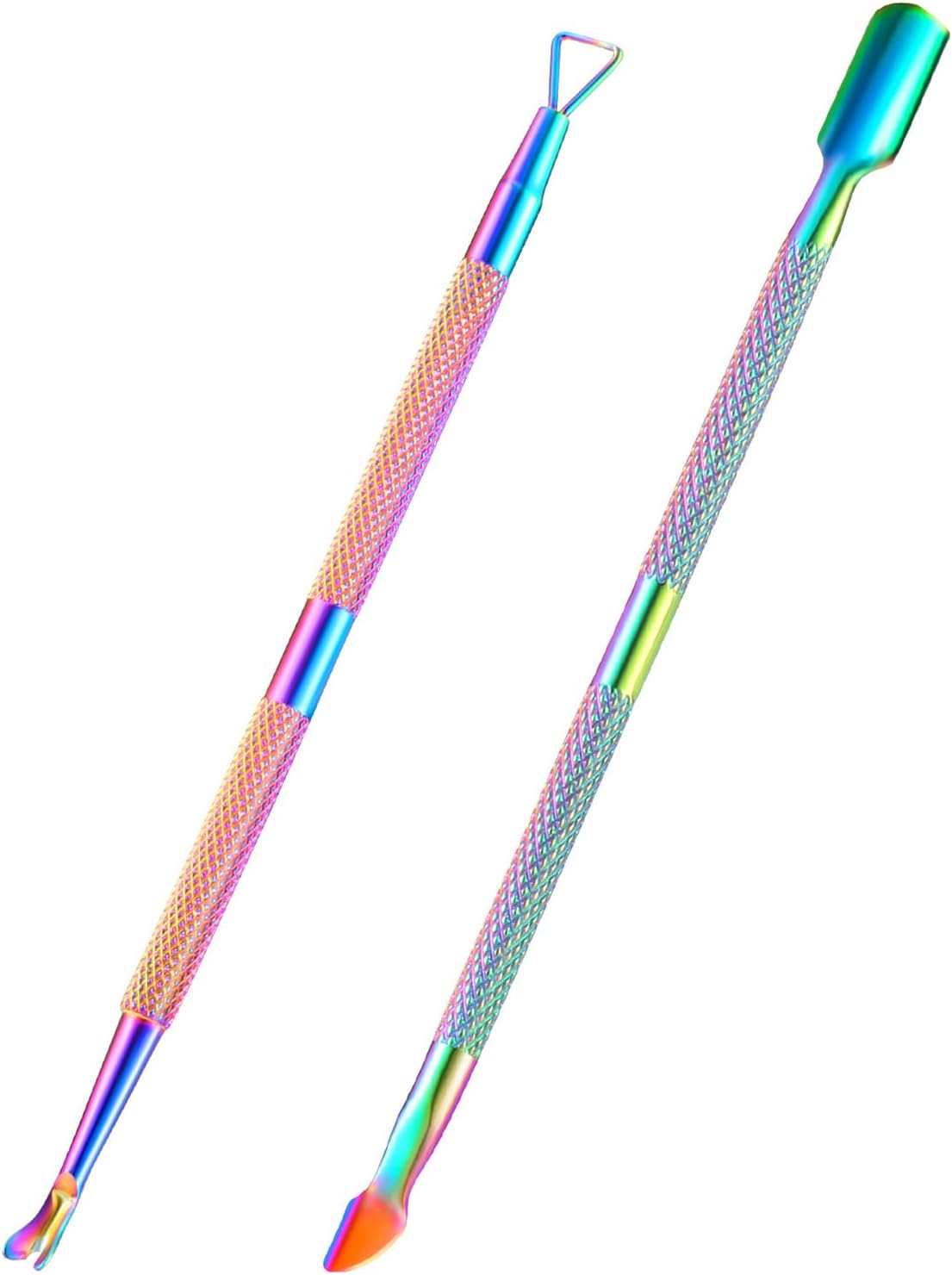2PCS Cuticle Pusher and Cutter Remover, Xunxmas Salon Nail Scraper for Gel Polish, Stainless Steel Manicure and Pedicure Cleaner Tool for Fingernail and Toenail (Colorful)