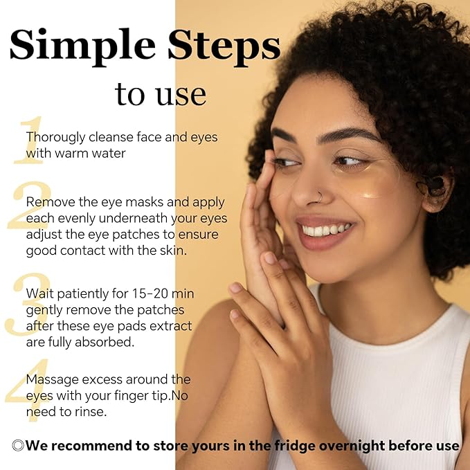 - 24K Gold Effect: gold eye mask is one of the most popular eye masks on the market, not just only like this eye mask's gold color, it’s most important this gold under eye patches have a huge improvement for problematic skin. Especially when it comes to anti-aging.