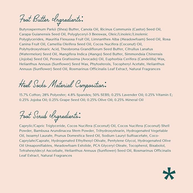 - Soothing shea and mango seed butters - two natural butters that boost skin moisture and give relief to your hard working feet; conditioning and strengthening the skin’s natural protective barrier with tons of skin-loving nutrients.