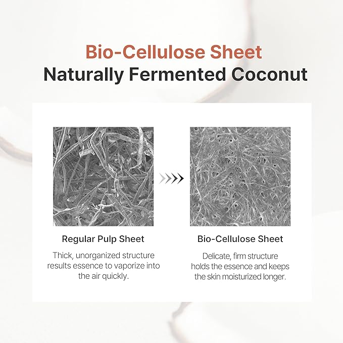- ENHANCED ESSENCE ABSORPTION: The bio-cellulose sheet mask adheres closely to your skin, maximizing the delivery of essence. This ensures your skin absorbs all the beneficial ingredients for effective hydration and elasticity.