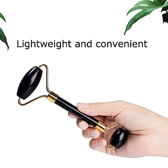 Black Obsidian Jade Facial Roller & Gua Sha Set 100% Natural Source from Highest Altitude of Himalayan Two-Sided Face Neck Massager Stone Beauty Tool