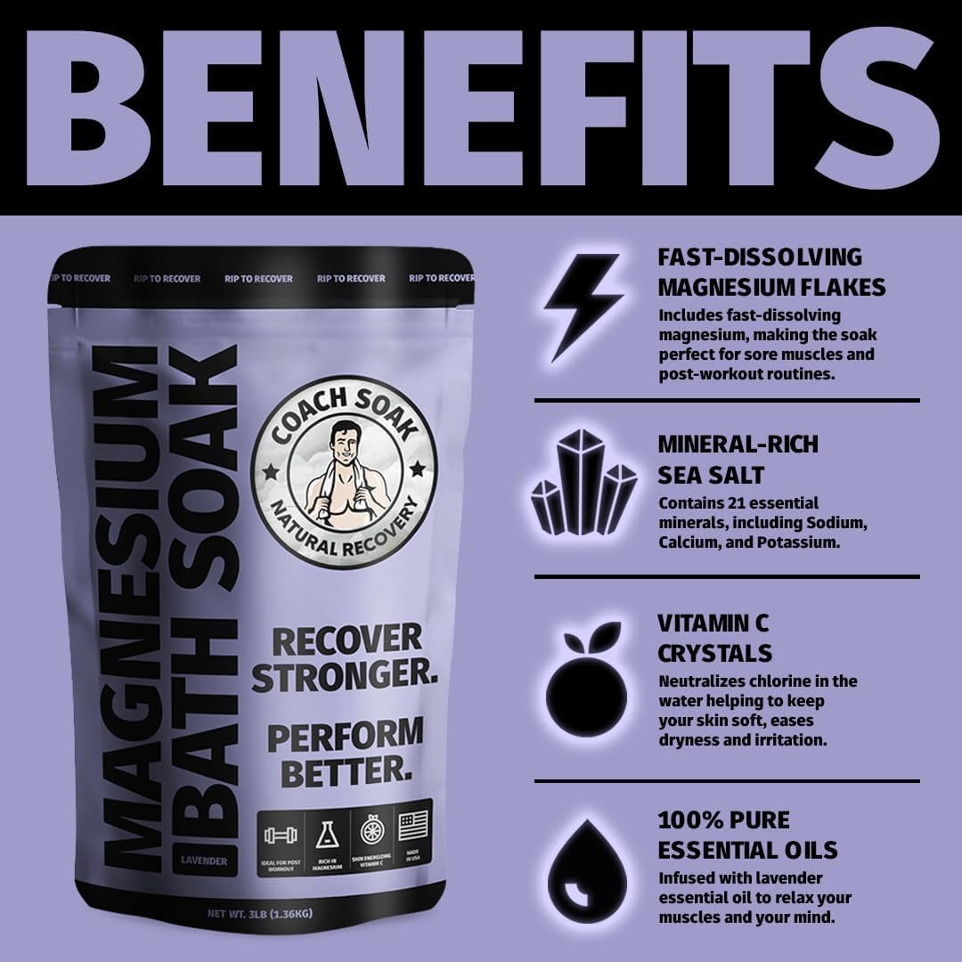 Coach Soak Recovery Bath Soak and Magnesium Lotion with MSM Lavender Bundle