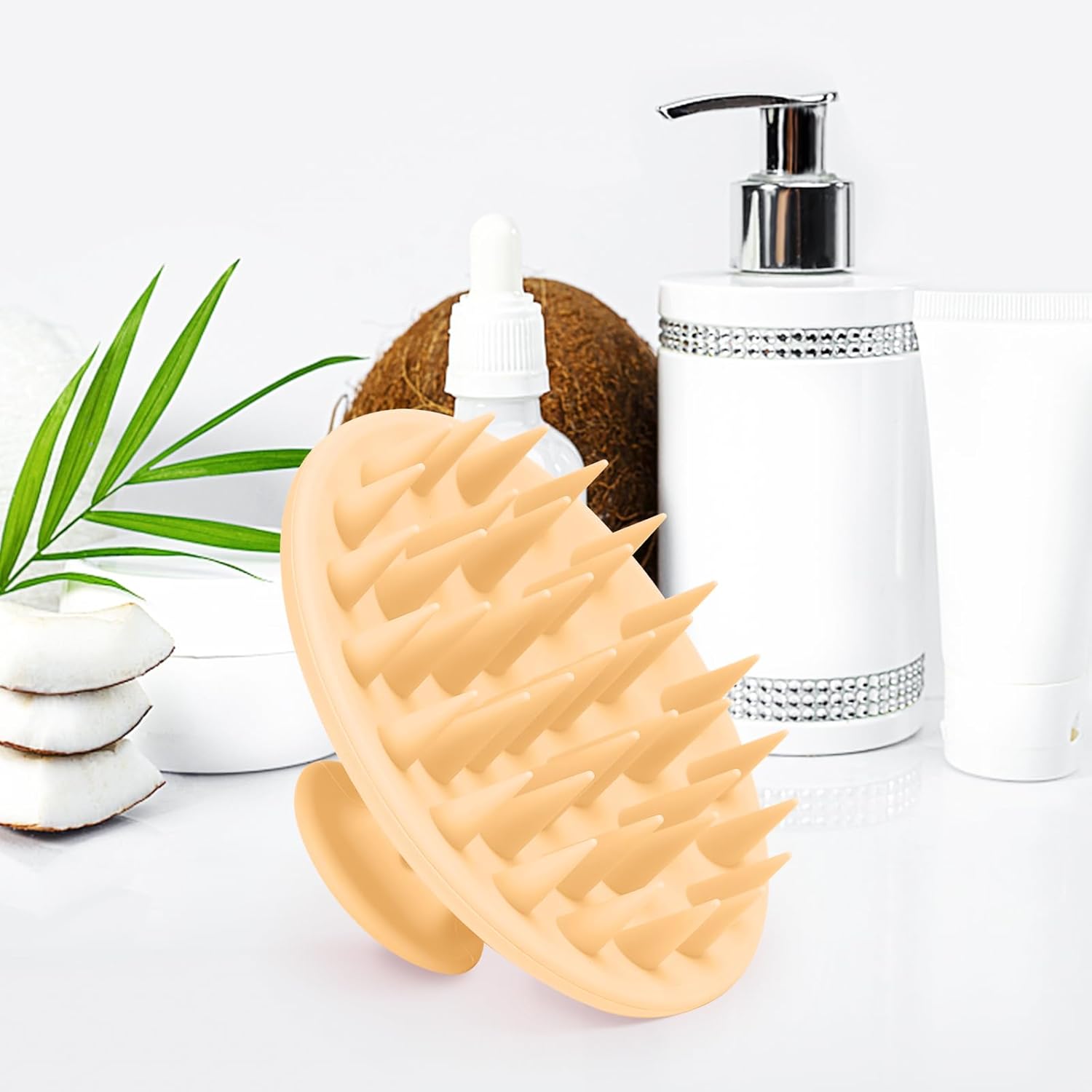 Silicone Scalp Massager Shampoo Brush, Scalp Scrubber for Hair Growth (Salmon Pink)