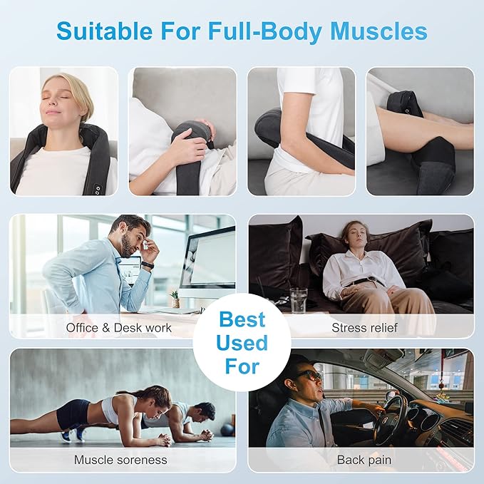 - Deep Kneading Massage:Comfier shiatsu neck and shoulder massager is equipped with 3D shiatsu rollers & 8 massage nodes which provide efficiently deep tissue kneading massage on your neck and shoulder, upper or lower back,leg,foot.