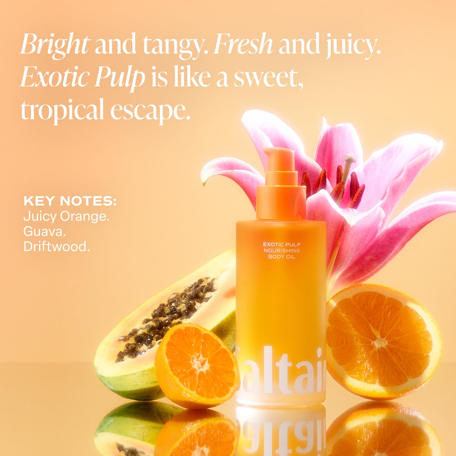 - EXOTIC PULP FRAGRANCE: Orange, Guava and Passionfruit create a vibrant and tropical explosion of juicy citrus, sun-ripened fruit, and exotic sweetness, creating a scent that feels bright, playful, and full of energy. Exotic Pulp is bright and tangy like an exciting tropical escape.