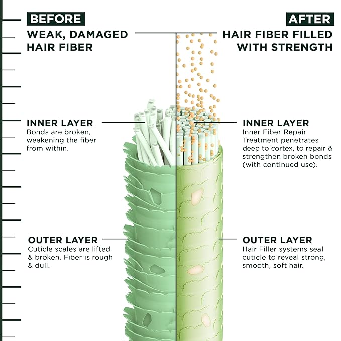 - 4-Step Hair Filler System: Apply Bonding Inner Fiber Repair Pre-Shampoo Treatment and leave on for 5 minutes. Rinse and apply Color Repair Shampoo. Rinse and apply Conditioner to wet hair. Apply Color Repair Serum. Do not rinse