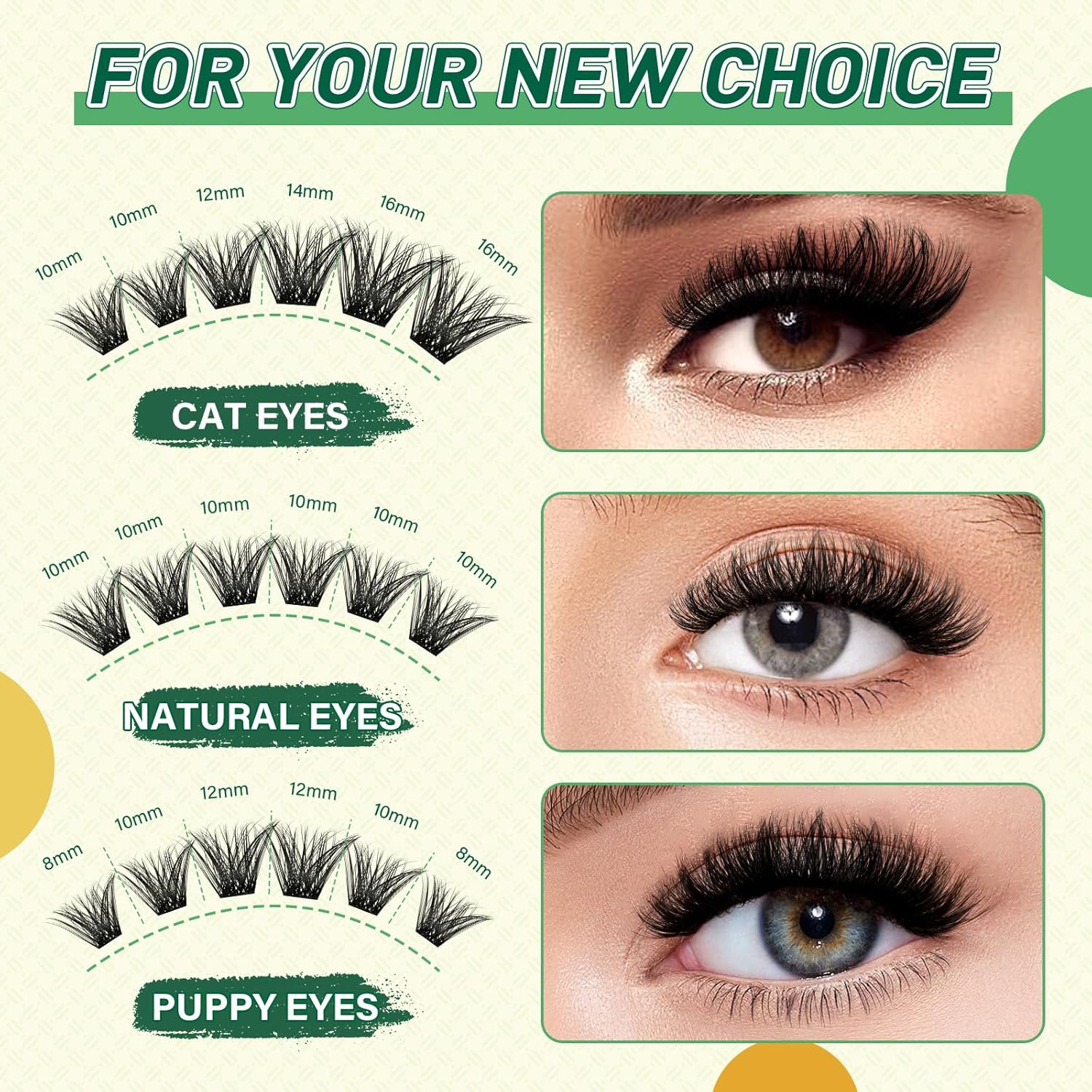 - 【168pcs High Quality Cluster Lashes】The simulated eyelash material is more realistic and will not feel plastic, comfortable and non-irritating on the eyes, allowing you to easily maintain a perfect makeup all day long.