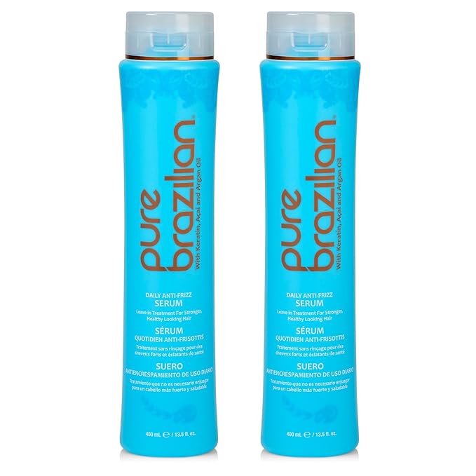 Pure Brazilian Anti-Frizz Daily Leave-In Serum, Strengthening Hair Treatment, Fortifies & Protects Hair From Heat & UVA/UVB, Pack of 2, 13.5 Ounce (400 Milliliter)