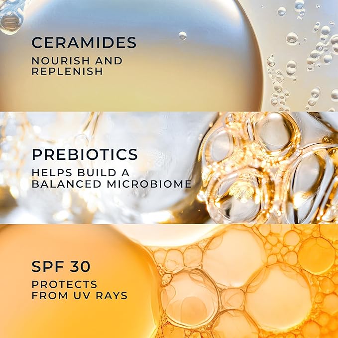 - DAY CREAM WITH SPF 30 DEVELOPED WITH DERMATOLOGISTS TO PROTECT SKIN BARRIER: Retrain plus maintain healthy skin in 14 days. Clinically proven to hydrate, brighten and smooth for healthy looking skin in just 14 nights. Formulated using 3 barrier- essential building blocks that are safe for sensitive skin- Ceramides, SPF 30 and Prebiotics.