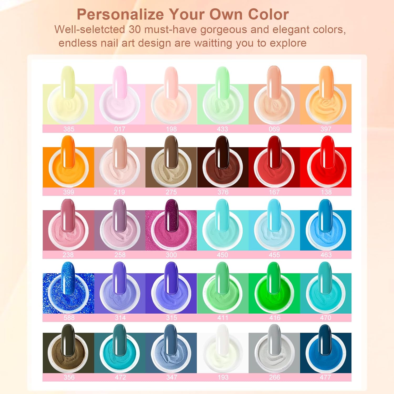- 【Warm Prompt】① Avoid direct contact with skin, if there is any incident, contact the doctor. ②The effection of dip powder may show differently in different people, 2~3 base coats while using will be the best.