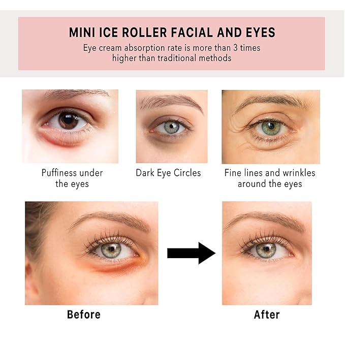 - PROVEN EFFICACY FOR PUFFINESS: Experience the transformative power of our Ice Roller for Puffy Eyes. By gently rolling away under-eye puffiness, it stimulates blood circulation, reduces inflammation, and contributes to a smoother, more youthful appearance. This is not just a face roller; it's your daily companion on the journey to healthier-looking skin.