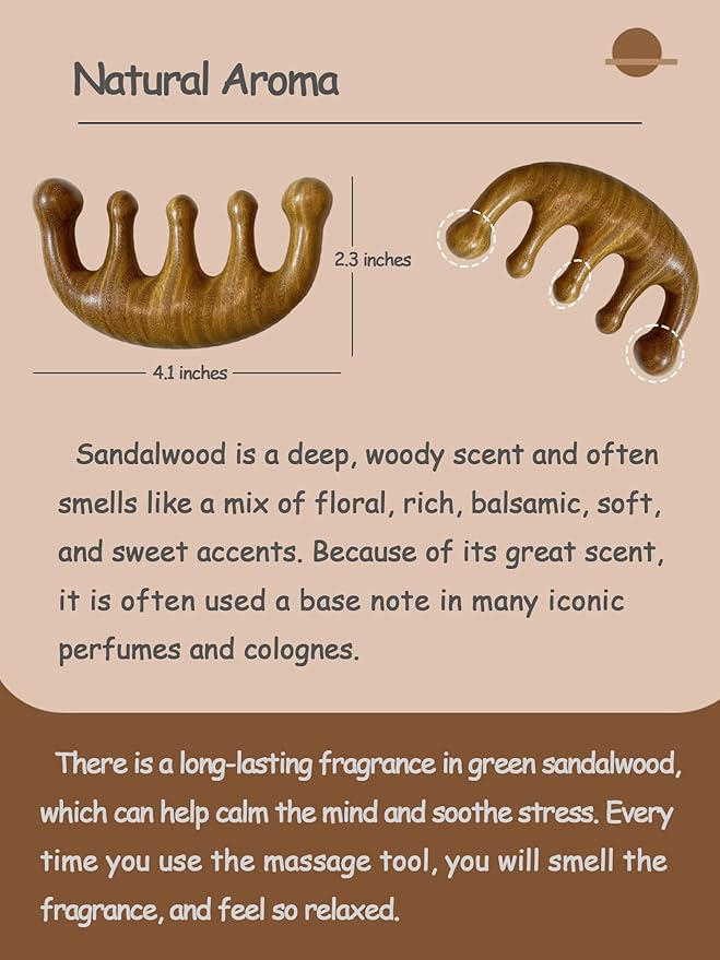 - Natural Aroma: There is a long-lasting fragrance in green sandalwood, which can help calm the mind and soothe stress. Every time you use the massage tool, you will smell the fragrance, and feel so relaxed.