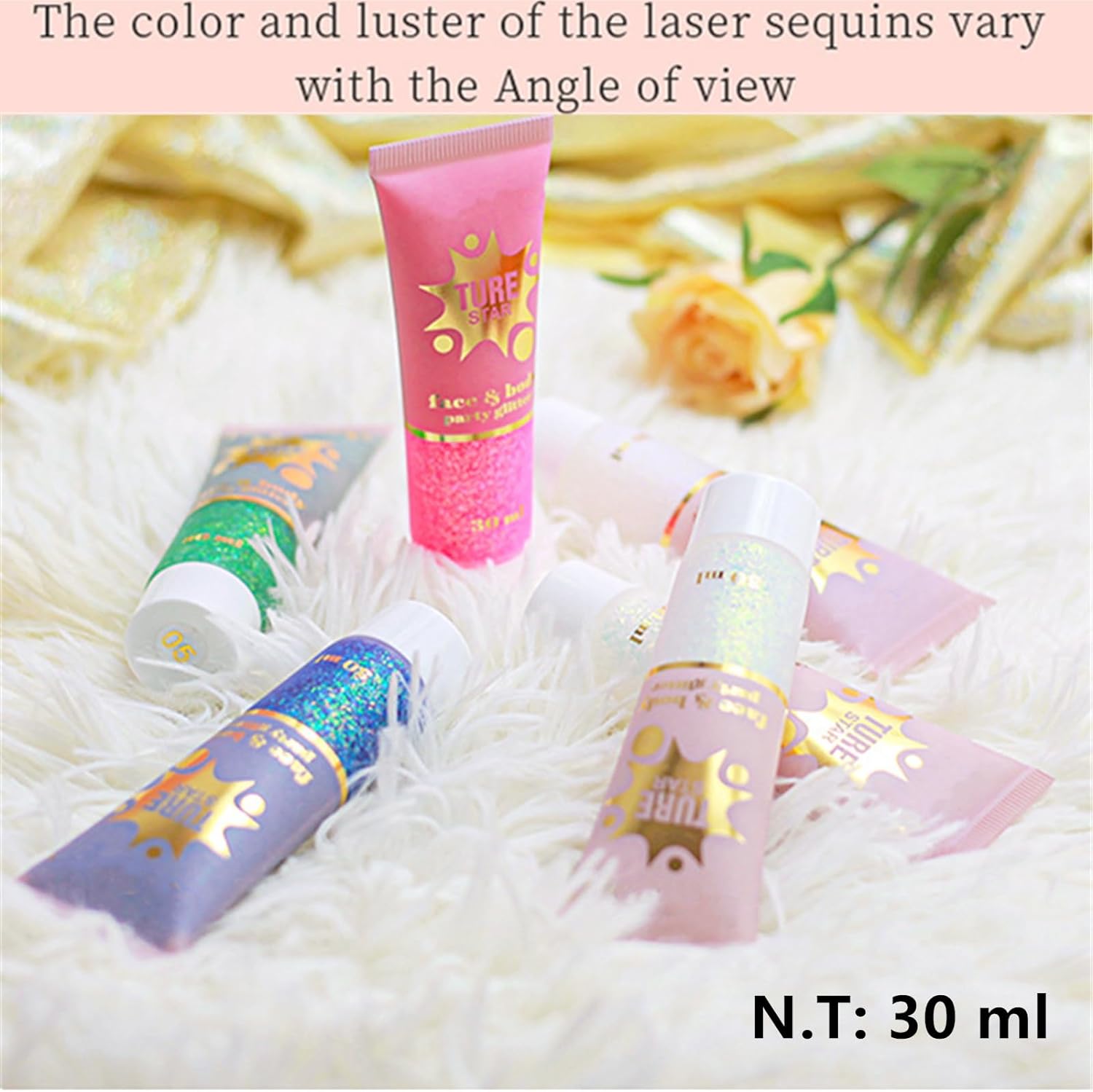 - 【Chameleon Purple Face Body Glitter Holographic Effect】 Our Face Body Glitter Blends with plenty of different shapes and sizes of chunky and fine glitters in a gel base,have a chameleon 2-3 colors wtih a holographic effect.The mermaid sequin glitters have vibrant color,which shows up as an ultra-reflective and shiny sparking shimmer smear.