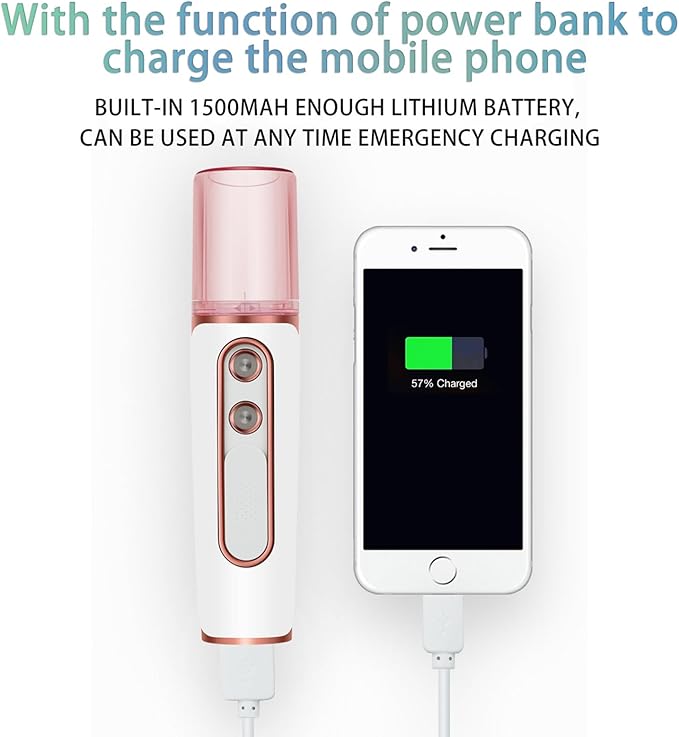- 【 Wide Application & Multiple Charging Options】The facial care mister produces an ultra-fine nano-ionized mist. Slide the switch to dispense the mist in one second. The facial care steamers is perfect for moisturizing the face, body, hair, eyelash extensions, and daily makeup. The mini face mister can also relieve symptoms of allergic rhinitis and nasal congestion, and soothe tired eyes. You can charge the face mister anytime with powerbank, laptop, power outlet, or car charger.