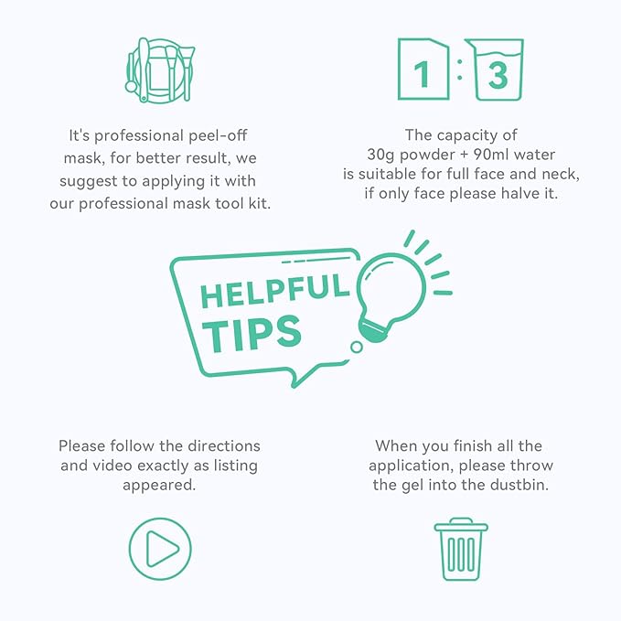 - PURIFYING POWDER : In contact with water, the ultra-fine powder will slowly rubberize, once applied to the skin, the mask refreshes and fits the contours of the face, gently remove impurities, pores minimizer / reduce, also good for acne, blackheads, dry and oil skin