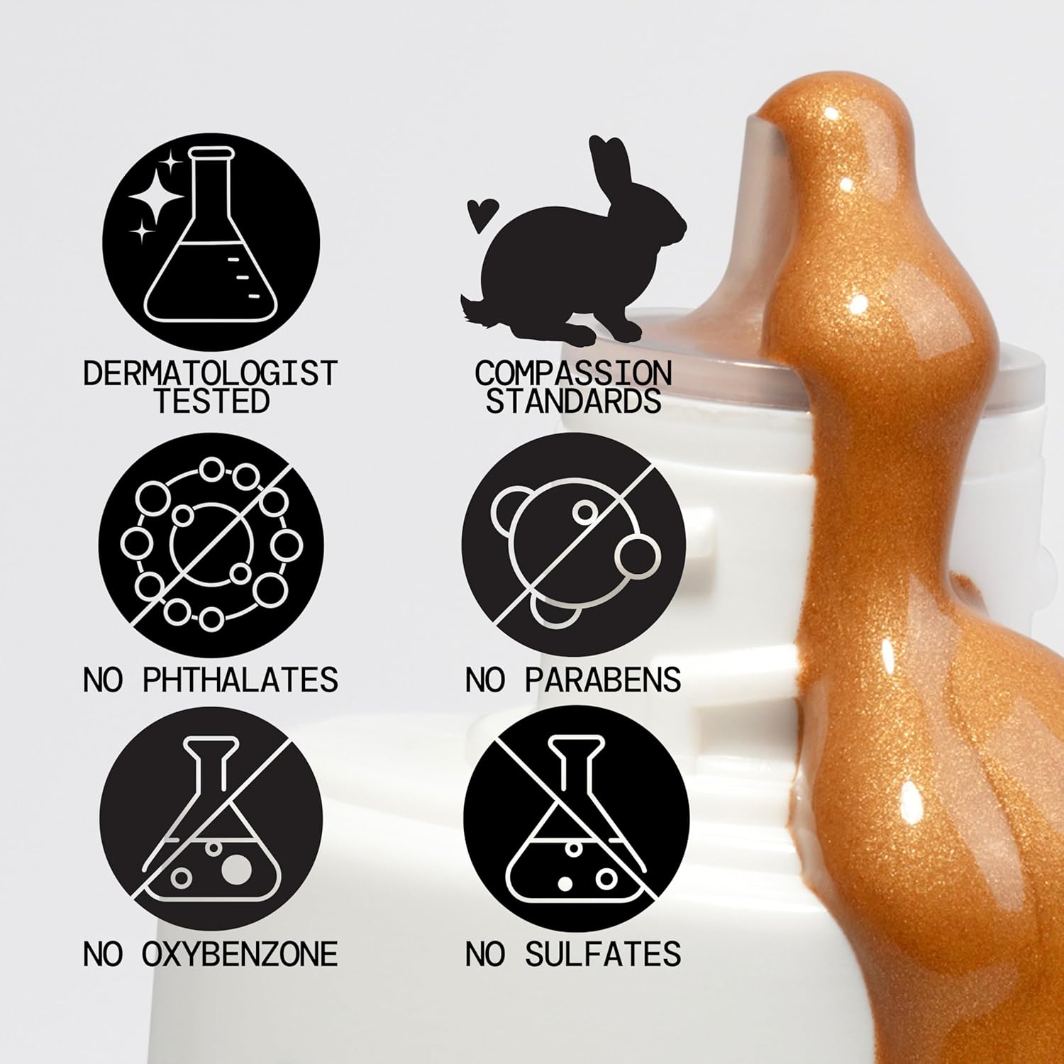 - Customizable & Versatile: These bronzing drops are totally adjustable to your desired level of glow. Use 1-2 drops for a hint of warmth or layer on more for a more pronounced bronze. You can apply it directly as a liquid bronzer on the high points of your face (cheeks, forehead, nose, and chin) or even all over for a no-sun tan effect. Mix it with lotion to add an all-over body glow on shoulders and décolletage. It’s transfer-resistant once it sets, so your radiant glow stays put on your skin, not on your clothes.