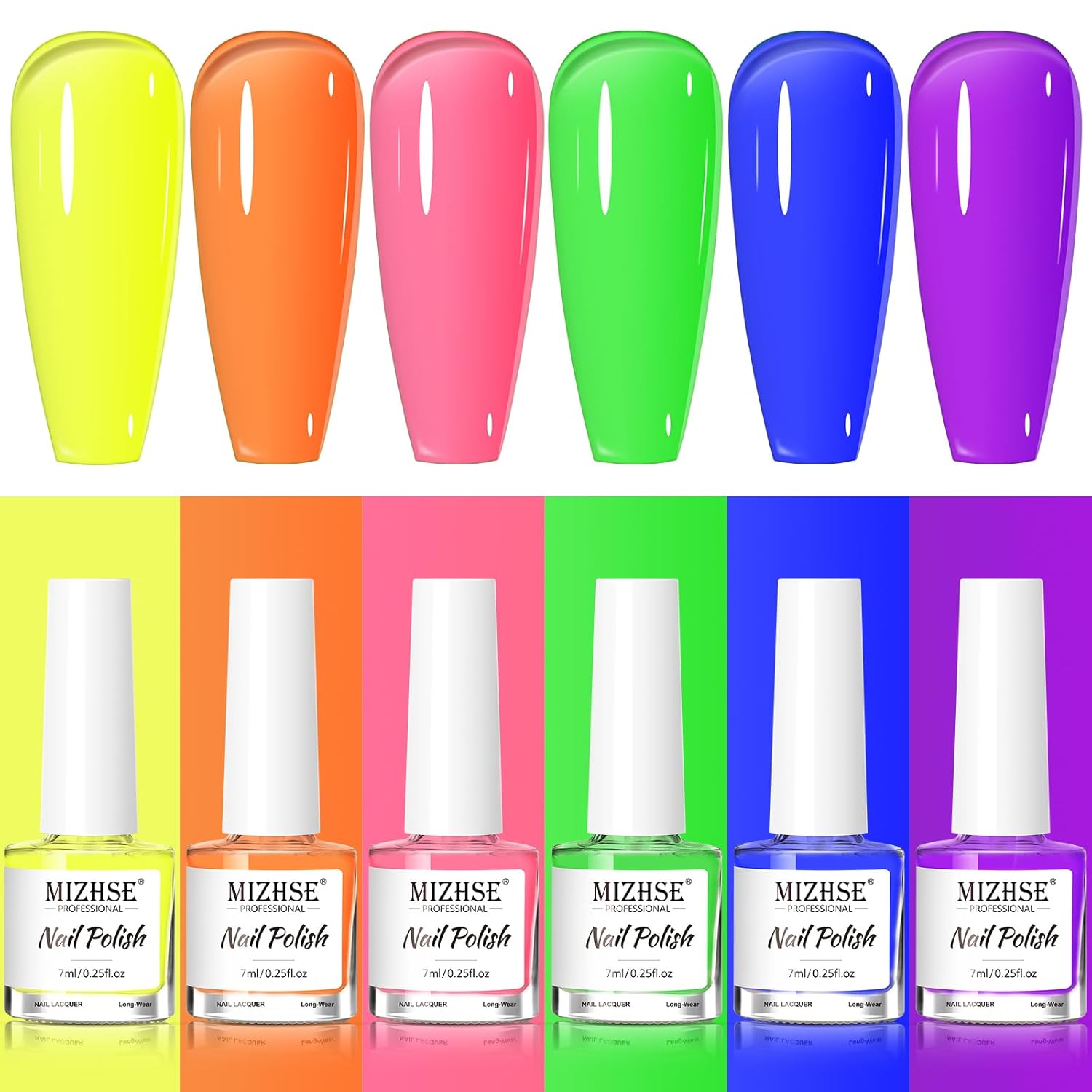 - Healthy & High-Quality Ingredients: MIZHSE fluorescent nail polish set is crafted with high-quality and safe materials. It won't harm your nails or easily fade or peel off, making it perfect for beginners and professional manicurists.