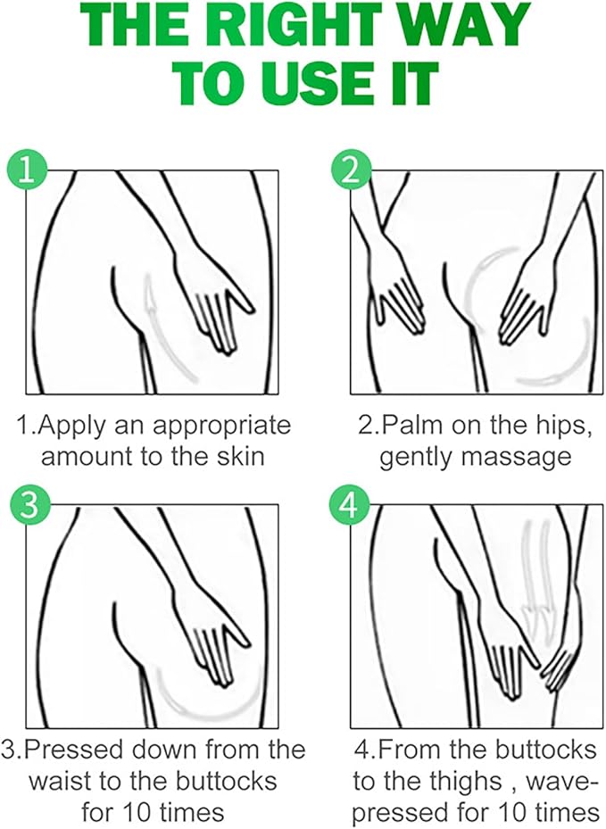 - Usage: After skin cleansing, apply proper amount of this product to your buttocks and thighs, massage and lift in a circular motion until it is slightly warm and absorbed. Use twice a day. Use after bathing for better results.